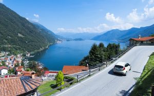 A car moving in provincial road Nr.15 in Argegno, province of Como, Lombardy.